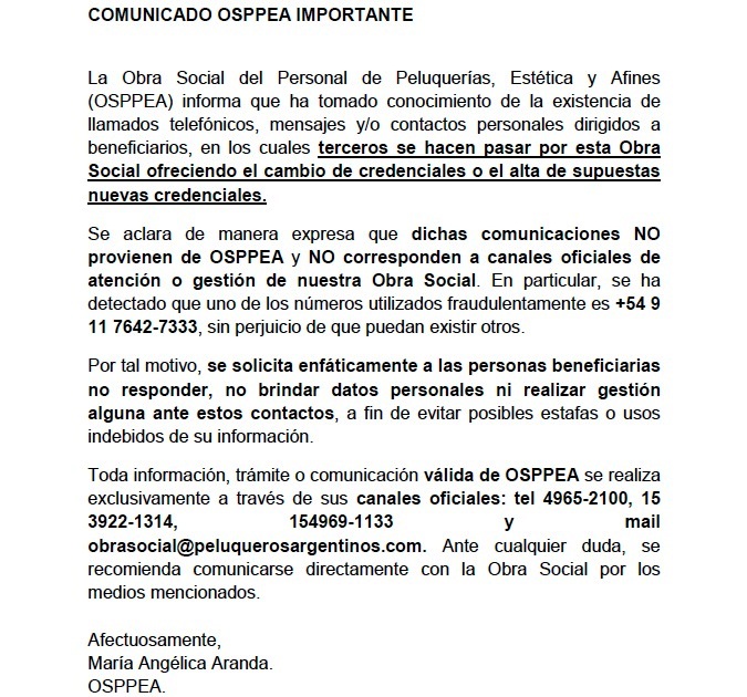 Disposición S.S.S. Cartilla OSPPEA